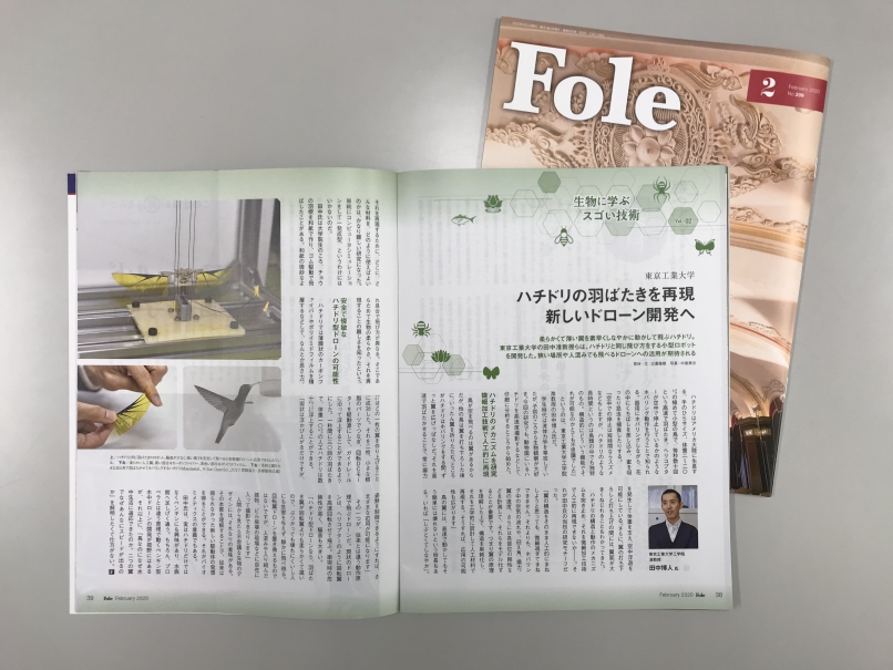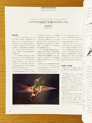 田中博人, "鳥の飛翔のバイオミメティクス:ハチドリに学ぶ," アグリバイオ, vol. 2, pp. 938-943, 2018. -
