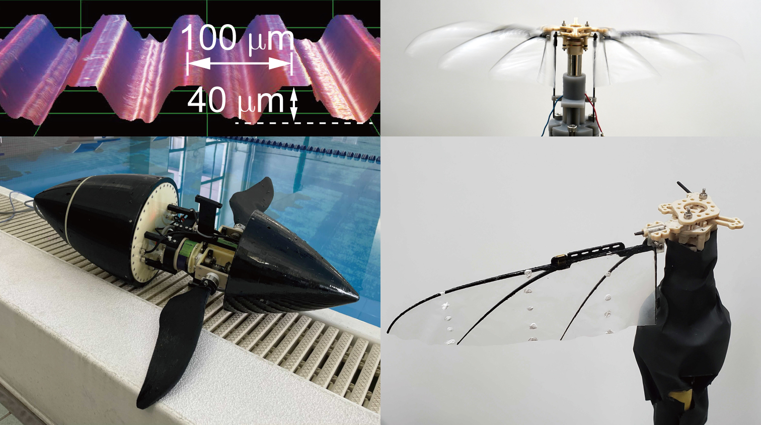 当研究室は2015年11月に設立されました。当研究室では、ハチドリやペンギンなど羽ばたき翼で流体中を自由自在に飛翔・遊泳する生物の力学的メカニズムを明らかにし、マイクロ加工技術を応用して小型で安全な飛翔・遊泳ロボットを開発します。これを通して生物が持つ「やわらかさ」と「微細構造」を取り入れた新しい生物規範型機械の創造を目指します。