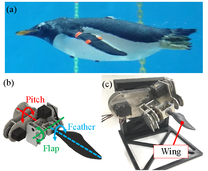 Yayi Shen, Natsuki Harada, Sho Katagiri, and Hiroto Tanaka, "Biomimetic Realization of a Robotic Penguin Wing: Design and Thrust Characteristics," DOI: 10.1109/TMECH.2020.3038224.