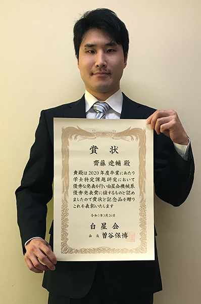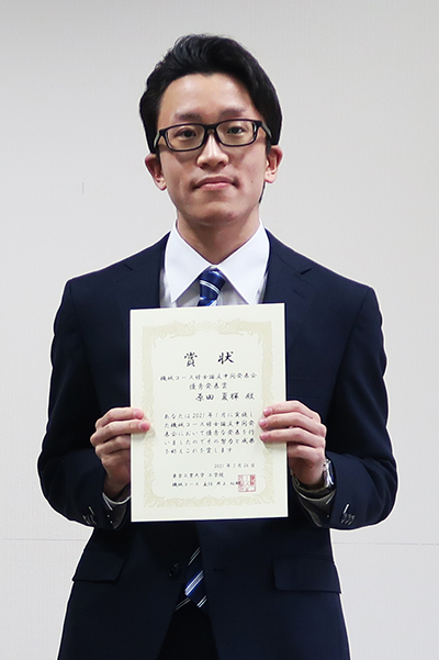 ![]() Ryosuke (M2) is given Miura Award by The Japan Society for Mechanical Engineers |