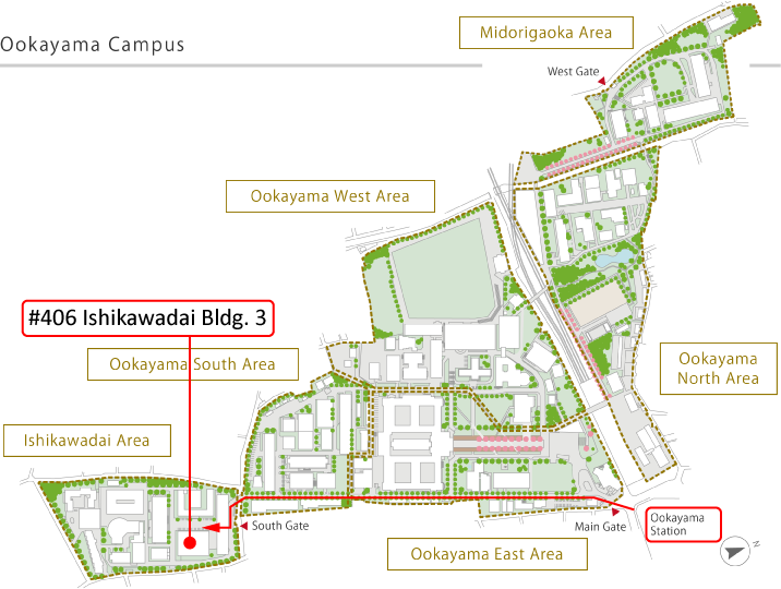 The lab is a 10-minute walk from Ookayama Station on the Tokyu Oimachi Line and Tokyu Meguro Line.